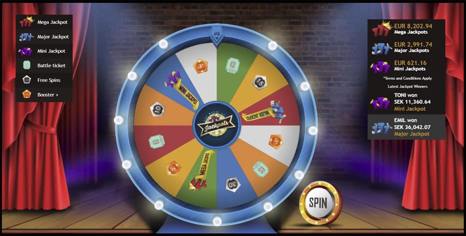 | Jackpot Wheels | Vinna jackpots på tre olika nivåer. Mer information på webbplatsen. | Visa bonuskoder |